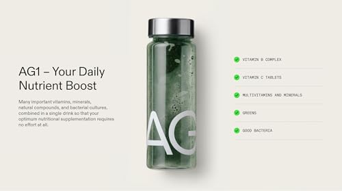 AG1 RESEARCH-BACKED DAILY HEALTH SUPPLEMENT: AG1 is a research-backed daily health supplement that combines vitamins, minerals, gut-friendly bacteria and a botanical blend into one single scoop. AG1 simplifies your morning routine easy by delivering a boost of nutrients: Daily nutritional and digestive support has never been easier¹.