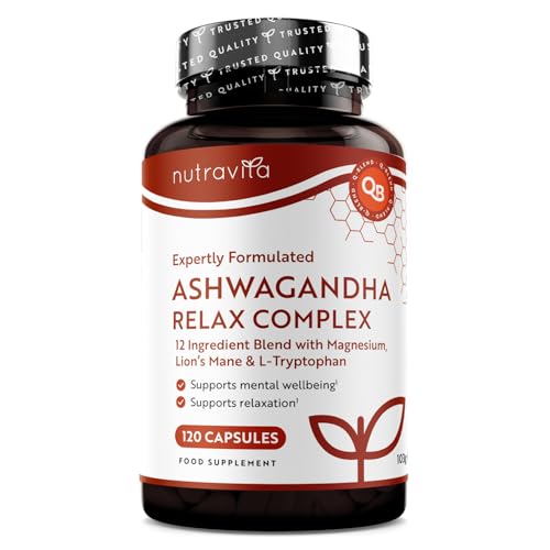 Specification: Ashwagandha KSM-66 Relax Complex with Magnesium, Lion’s Mane & L-Tryptophan – Supports Relaxation & Mental Wellbeing – Normal Psychological Function & Reduction in Fatigue – 120 Capsules – Nutravita