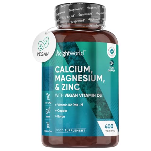 Calcium Magnesium Zinc and Vitamin D Supplement | 1+ Year Supply | 400 Vegan Tablets | 1414mg per 2 Tablets – with Zinc, Selenium & Vitamin K2 – for Bones, Teeth & Muscle Function (EFSA Claims)