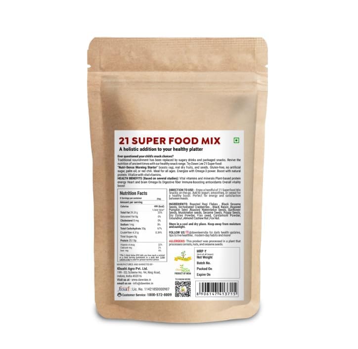 Dawn Lee 21 Superfoods- A combination of Ayurveda research-based Superfoods it is made with the mixture of ragi authentic dry fruits and seeds
