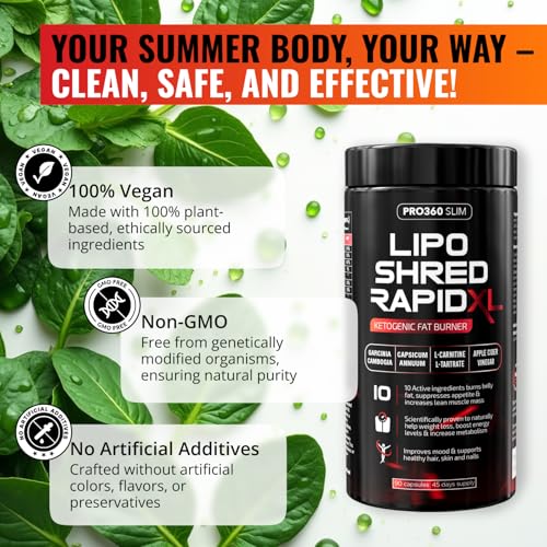 Lipo Shred Rapid XL Weighto Management– Triple Action Fat Shredder with Apple Cider Vinegar, Garcinia Cambogia, Green Tea- 90 Capsules