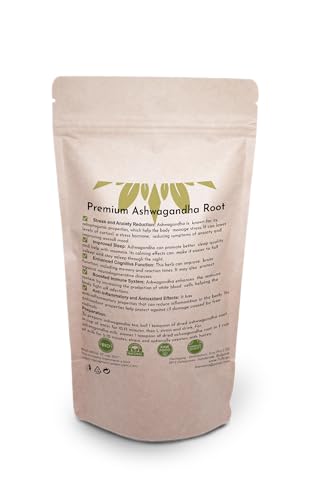 100% PURE AND NATURAL: Our Ashwagandha Root is certified organic, non-GMO, and vegan, ensuring you receive the highest quality product for natural stress relief, immune support, and energy boost.