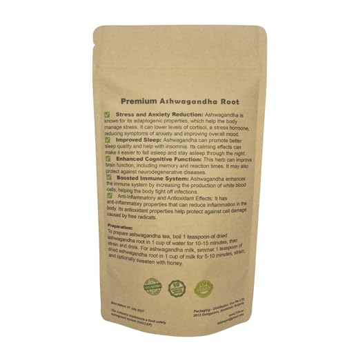 Premium Ashwagandha Root 100g – 100% Pure, Raw, Wild-Harvested, Non-GMO, Vegan – Natural Stress Relief, Immune Support, Energy Boost – Ethically Sourced from Pristine Environments
