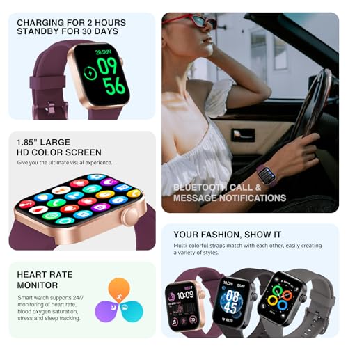 Smart Watch for Women Men Answer/Make Call,1.85″HD Screen Fitness tracker with Step Counter,140+ Sport Modes Smartwatch with Heart Rate Sleep Monitor,IP68 Waterproof Activity Tracker for Android iOS